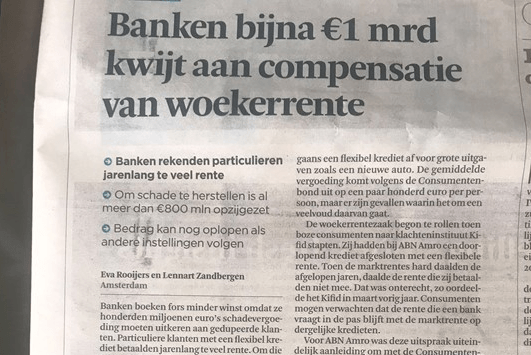 Banken reserveerden rond miljard euro voor compensatie aan teveel betaalde rente. Zo becijferde het Financieele Dagblad een aantal jaar geleden.